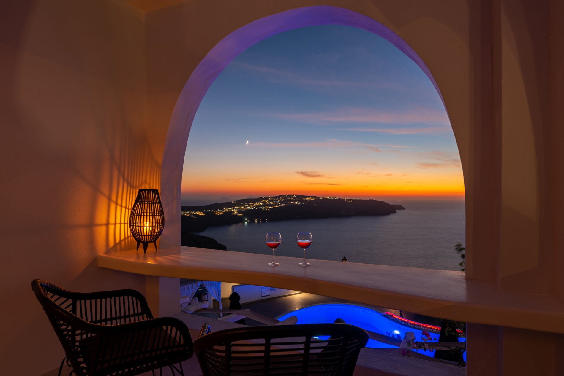 El factor X aquí es la sensacional ducha que da a una ventana con impresionantes vistas del atardecer sobre el volcán. Este detalle transforma este encantador alojamiento en un lugar de peregrinaje para aquellos que buscan relajación y romance en Santorini.